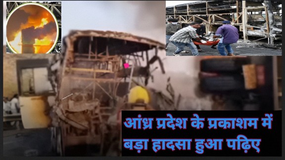 Andhra Pradesh में बस दुर्घटना: गुरुवार को आंध्र प्रदेश के प्रकाशम जिले के रायवरम में एक बड़ी सड़क दुर्घटना हुई। स्लैब खदानों के पास एक निजी ट्रैवल बस टिपर लॉरी से टकरा गई। टक्कर के बाद भयंकर धमाका हुआ, जिसके परिणामस्वरूप दोनों वाहनों में आग लग गई। जलने से मौके पर ही दस लोग मारे गए। 20 से अधिक लोगों को अस्पताल भेजा गया है।